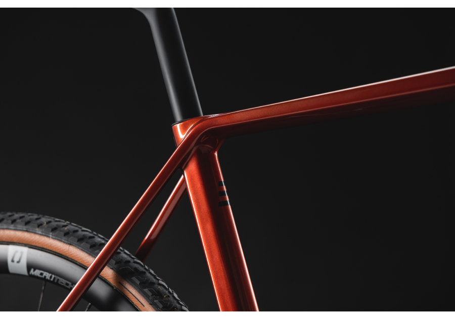 42C相当のタイヤをはけるフレームクリアランスをもち、さらに多数のボトルケージホールを設けるなど、遊び心満載のバイクです。
